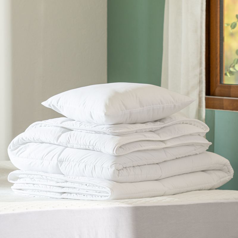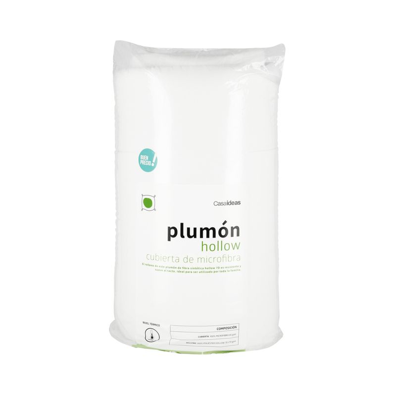 Plumón hollow con cubierta de microfibra. El relleno de este plumón de fibra sintética hollow 7D es resistente y suave al tacto. Ideal para ser utilizado por toda la familia.